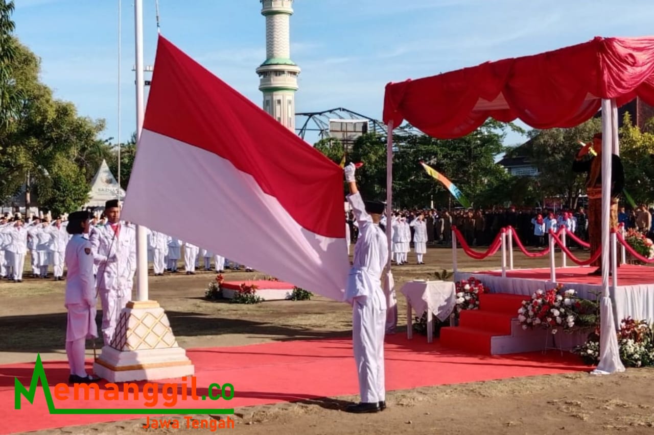 JATENG MEMANGGIL- Gelar upacara peringatan Hari Ulang Tahun (HUT Kemerdekaan RI) ke 78, Pemerintah Kabupaten Kendal, Jawa Tengah, terjunkan 70 Pasukan Pengibar Bendera Pusaka (Paskibraka) Kendal untuk mengibarkan Bendera Merah Putih.