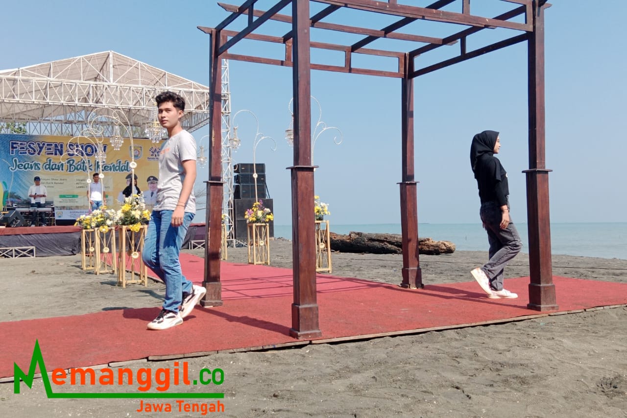 JATENG MEMANGGIL- Dalam rangka mengembangkan pariwisata dan memberikan pembinaan kepada para pelaku Usaha Kecil Menengah Mikro (UMKM) yang ada di Kendal, Pemerintah Kabupaten Kendal, Jawa Tengah, melalui Dinas Kepemudaan Olahraga dan Pariwisata (Disporapar Kendal) menggelar Fesyen Show Jeans dan Batik Kendal, di wisata Pantai Ngebum, Mororejo Kaliwingu, Minggu (29/10/2023).